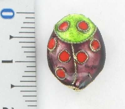 S_32709 - Art.nr: 32709 - CLOISONNE BEADS AUBERGINE / GREEN BEETLE (6 pcs.)
