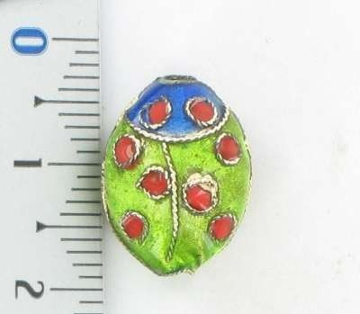 S_32703b - Art.nr: 32703b - CLOISONNE BEADS GREEN / BLUE BEETLE (6 pcs.)
