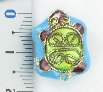 S_32904c - Art.nr: 32904c - CLOISONNE BEADS GREEN / BROWN / BLUE TURTLE (6 pcs.)