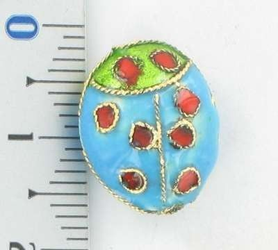 S_32704b - Art.nr: 32704b - CLOISONNE BEADS BLUE / GREEN BEETLE (6 pcs.)