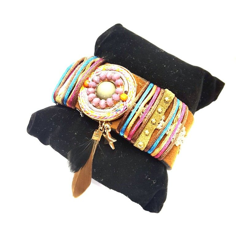 S_811325G - COGNAC LEATHER BRACELET WITH RHINESTONE (1st)
