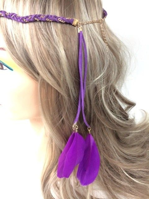 S_600028B - IBIZA LOOK BRAIDED HAIR BAND WITH FEATHERS PURPLE (1st)