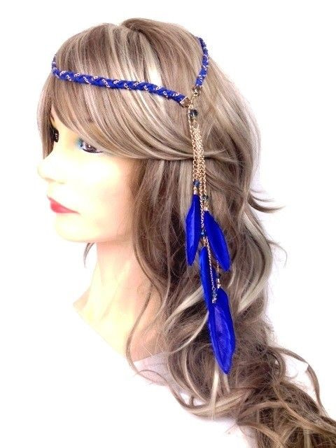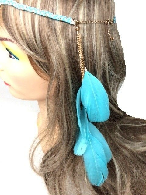 S_600027D - IBIZA LOOK BRAIDED HAIR BAND WITH FEATHERS TURQUOISE (1st)