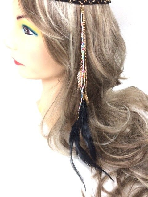 S_600024B - IBIZA LOOK BRAIDED HAIR BAND WITH BLACK FEATHERS (1st)