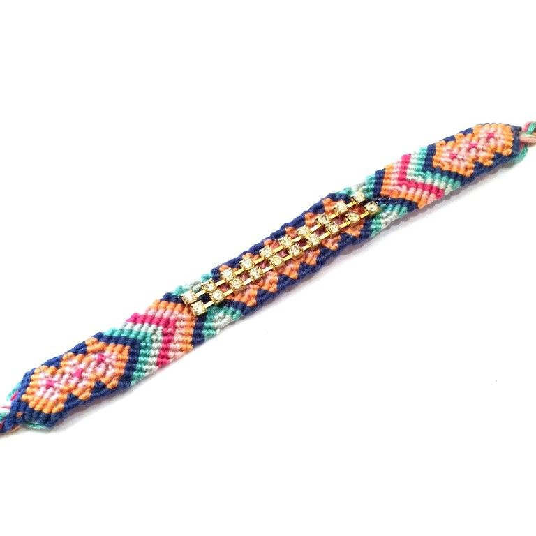 S_600043E - IBIZA LOOK BRAID BRACELET WITH COLORFUL RHINESTONE (1st)