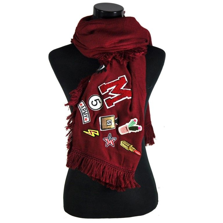 S_716326B - RED SQUARE SCARF WITH PATCHES AND FRILLS (1st).