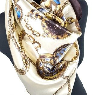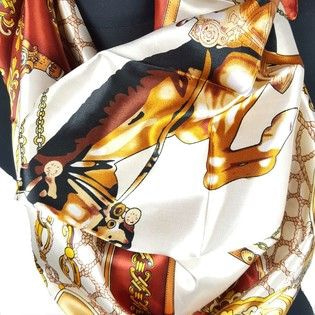 S_1502500 - SQUARE SCARF BEIGE HORSE COGNAC (1st)
