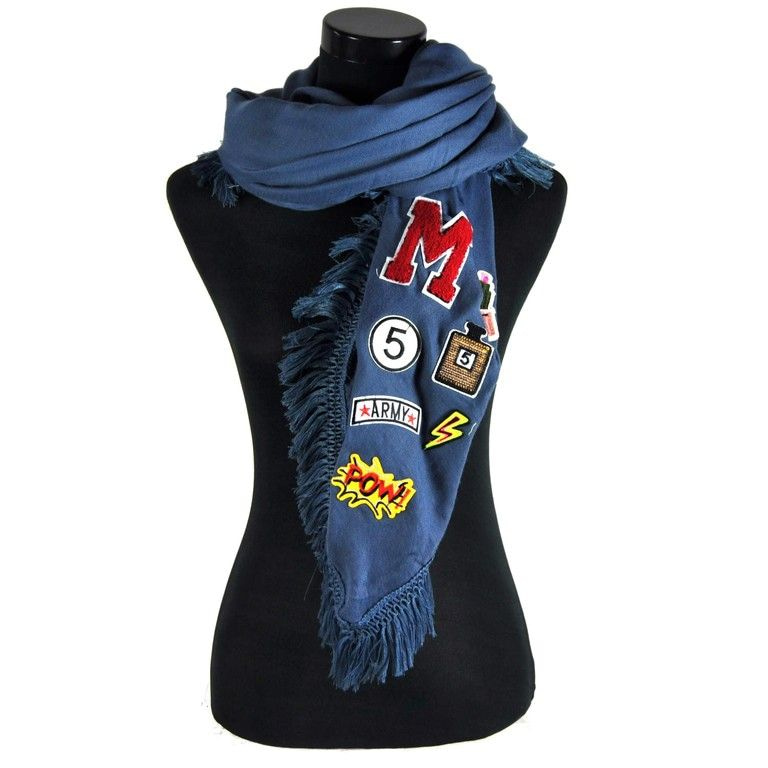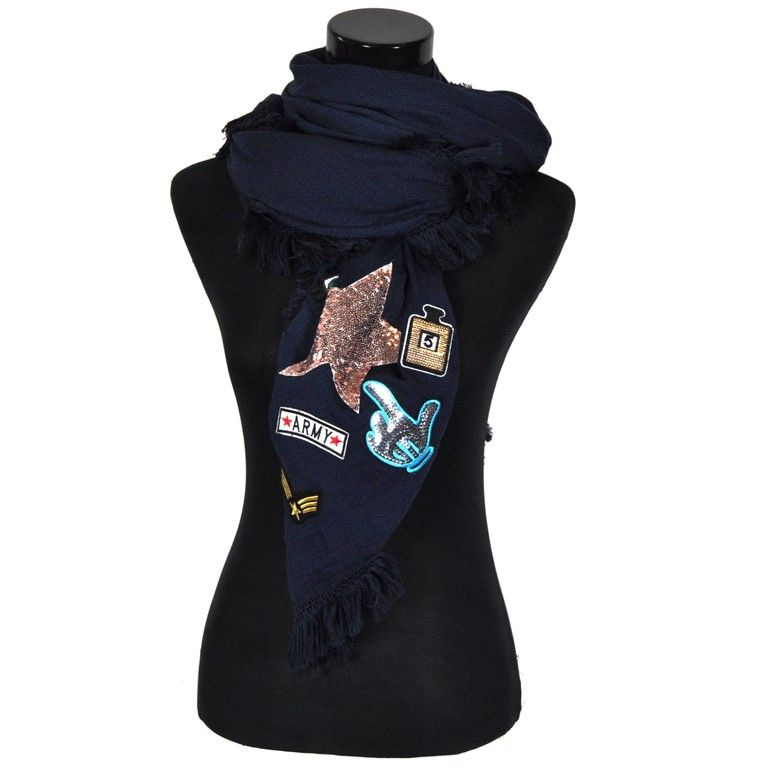 S_790871D - DARK BLUE SQUARE SCARF WITH PATCHES AND FRILLS (1st).