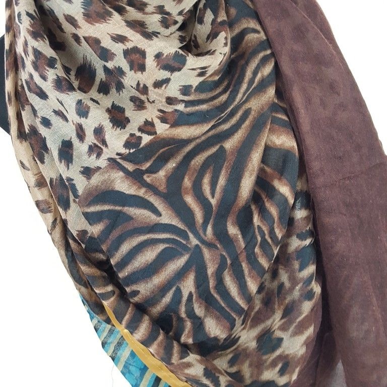 S_1504500 - TIME SQUARE SCARF BROWN / BLUE (1st)