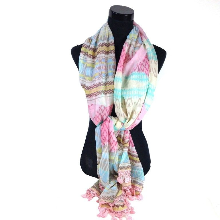 S_2394503 - LUXURY SCARF WITH PINK CREAM / MINT BLUE (1st)