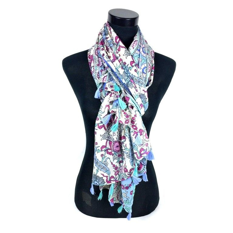 S_1940202 - SCARF with tassels PURPLE / MINT flowers (1st)