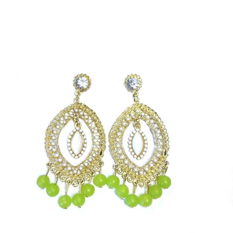 S_600403H - LUXURIOUS EARRINGS WITH GREEN RHINESTONE SCOOPS AND TRANSPARENT (1st)
