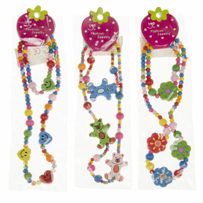 LG5379 - CHEERFUL WOODEN CHILDREN'S NECKLACE + BRACELET SET (48 pcs.)