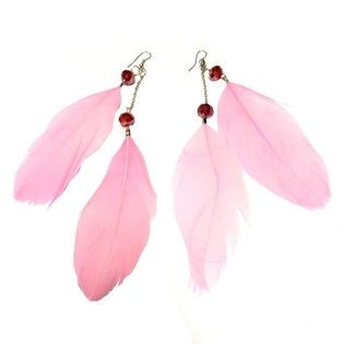 S_600761G - EARRINGS FEATHERS WITH BEADS PINK / RED (1st)