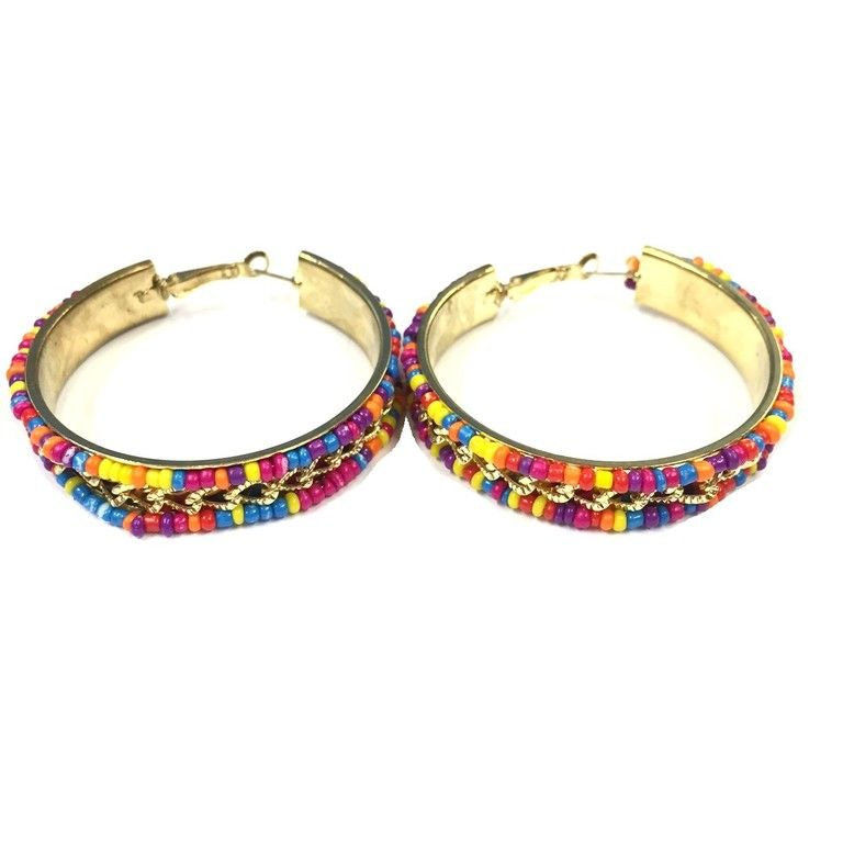 S_600743 - EARRINGS GOLD RING - BEADS COLORFULL (4st)