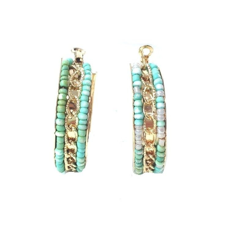 S_600743A - EARRINGS GOLD RING - BEADS MINT (1st)