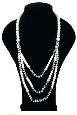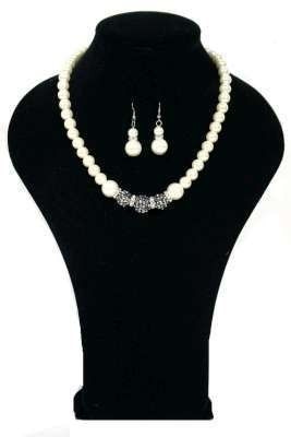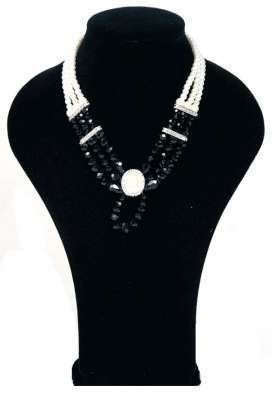 S_811061 - Art.nr: 811061 - PEARL NECKLACE BLACK / WHITE (3pc)