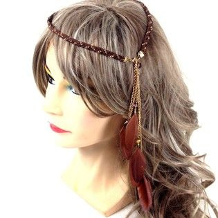 S_600112B - IBIZA LOOK BRAIDED HAIR BAND WITH FEATHERS BROWN (1st)