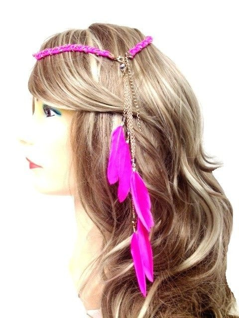 S_600114C - IBIZA LOOK BRAIDED HAIR BAND WITH FEATHERS FUCHSIA (1st)