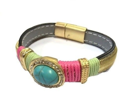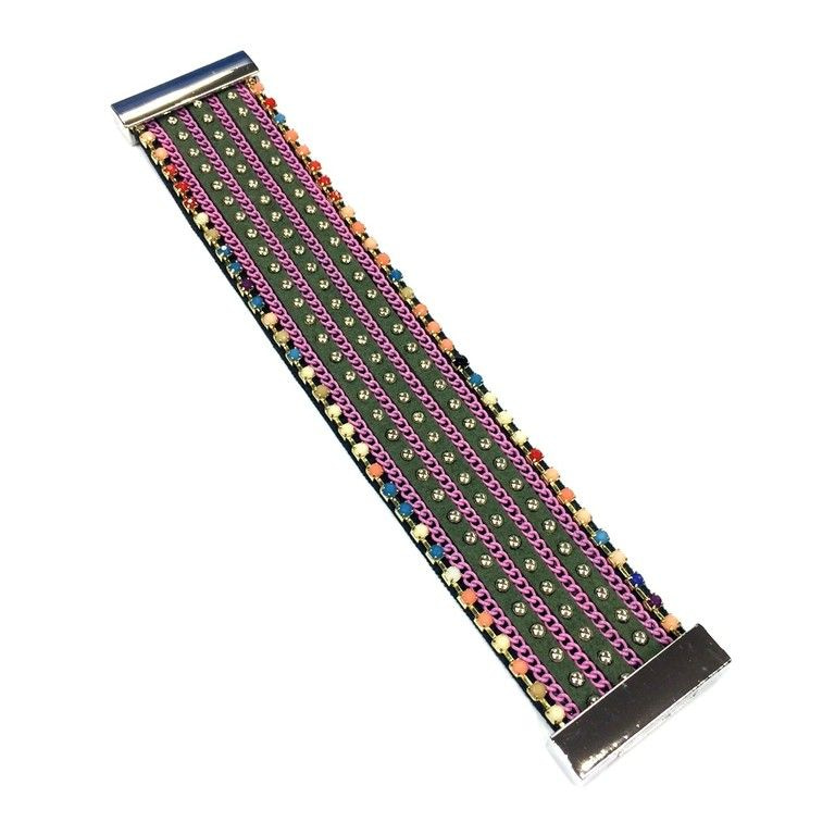 S_600800N - BRACELET SILVER MAGNETIC CLOSURE - GREEN / PINK STUDS (1st)
