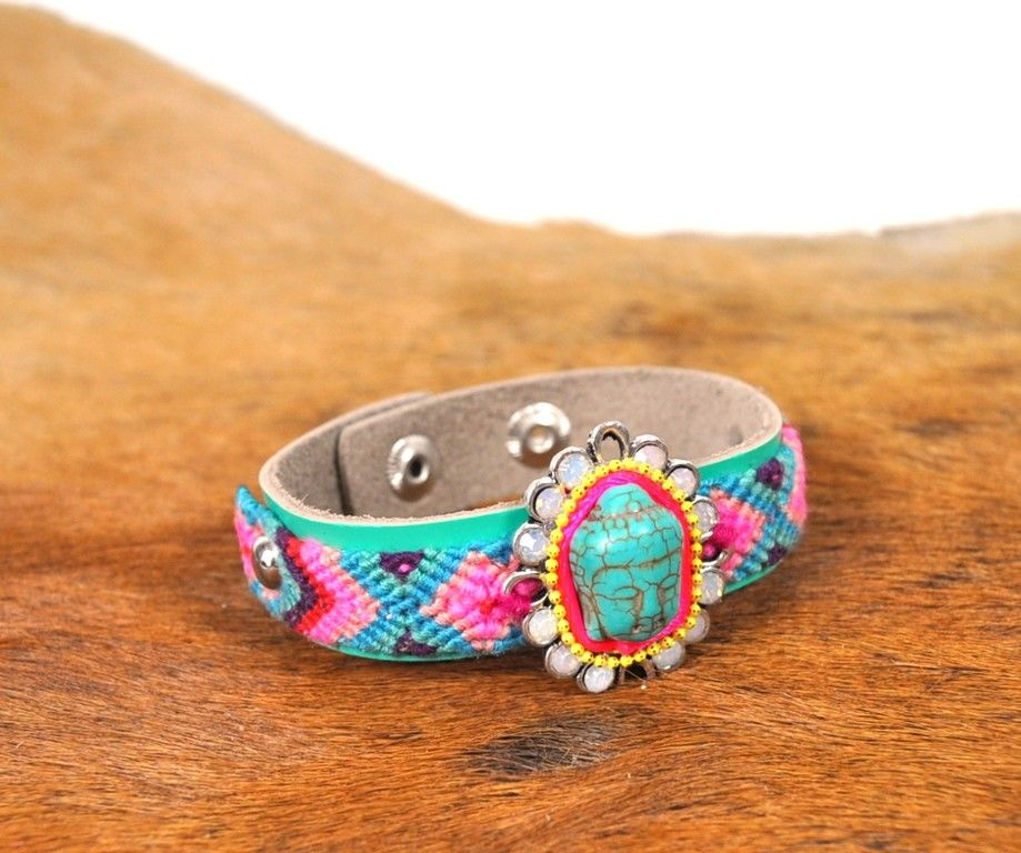 S_600043D - IBIZA LOOK BRAIDED BRACELET WITH MULTICOLOR RHINESTONE (1st)