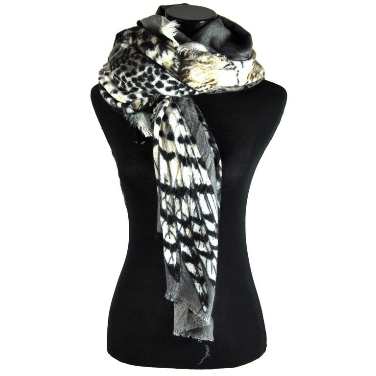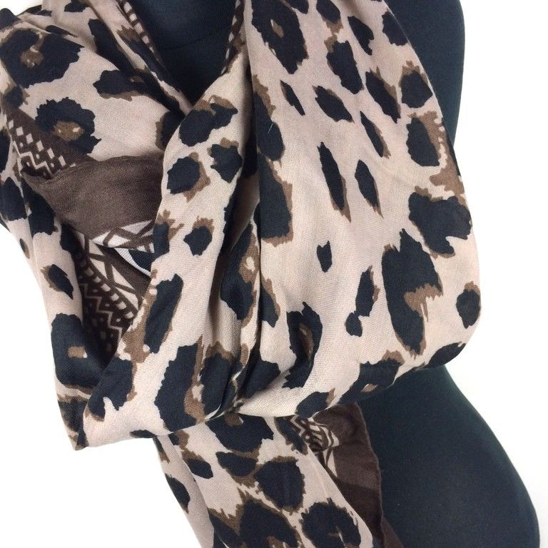 S_2317500A - TIGER PRINT SCARF TAUPE / CREAM WITH BROWN (1st)