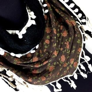 S_70015AL - TRIANGLE SCARF BLACK FLOWER (1st)