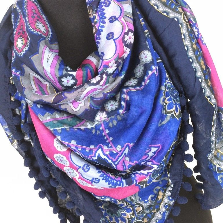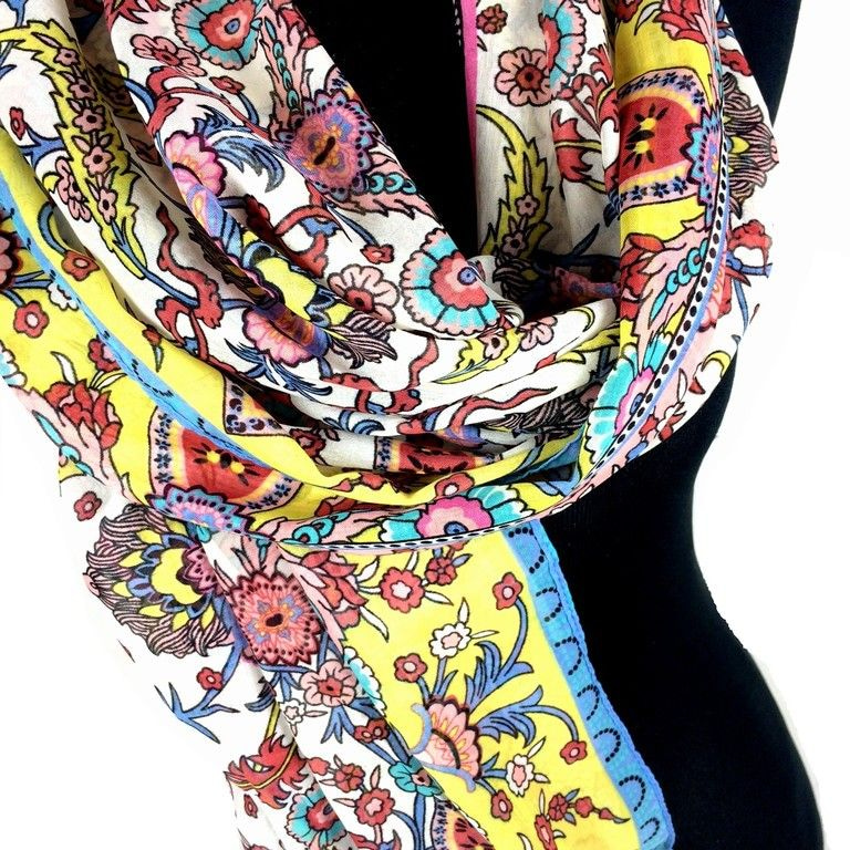 S_1940700 - SCARF with tassels YELLOW / PURPLE BLUE (1st)