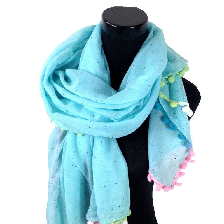 S_2029407 - LUXURY SCARF WITH FRILLS TURQUOISE (1st)