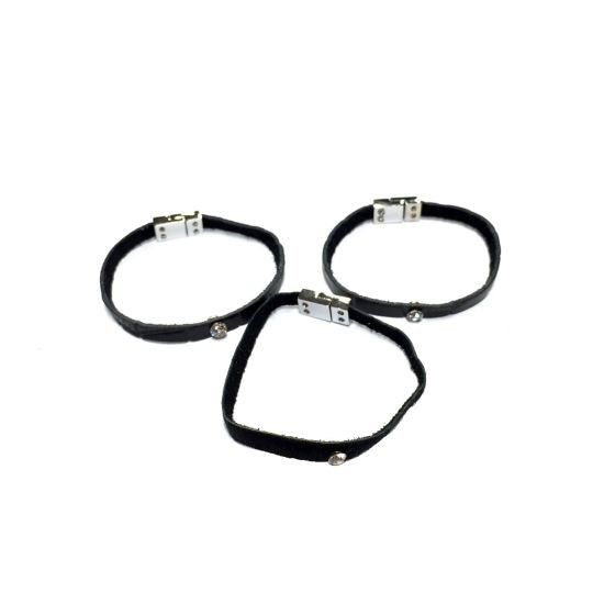 S_629065C - LEATHER BRACELET WITH STRASS BLACK STONE (3p)
