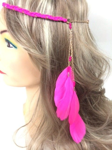 S_600022D - IBIZA LOOK BRAIDED HAIR BAND WITH FEATHERS FUCHSIA (1st)