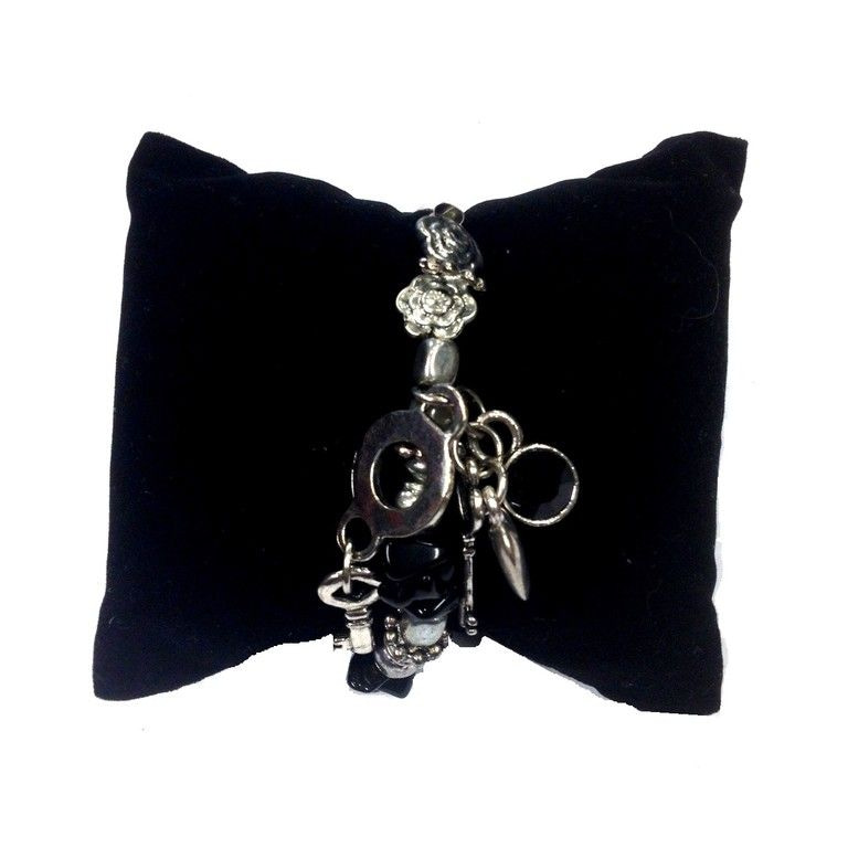 S_798570 - BRACELET CHARMS SILVER LOOK BLACK (4pcs)