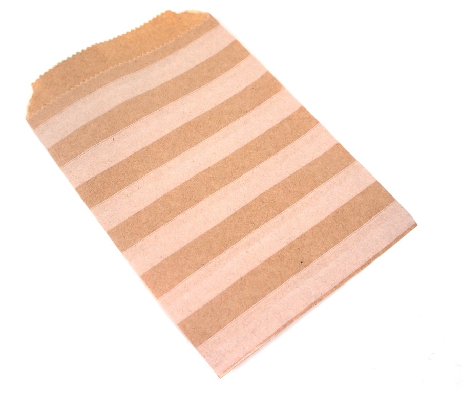 S_610008C - PAPER BAGS BROWN STRIPE - 13.5x10 (100st)