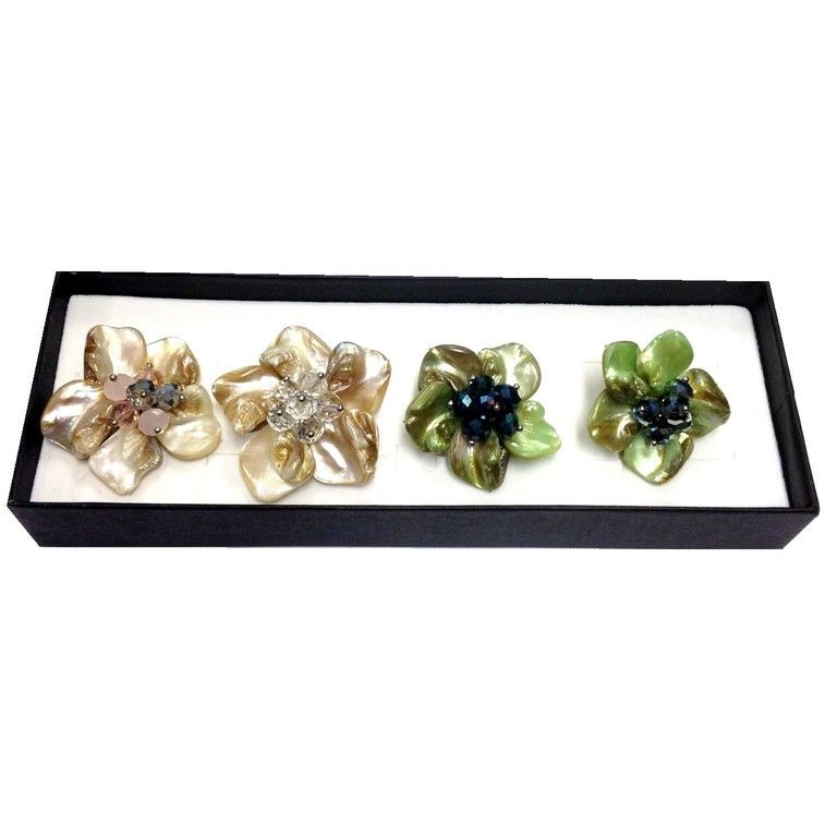 S_700231B - RINGS FLOWERS INCL BOX 1xCRÈME / 3xGROEN (4pc)