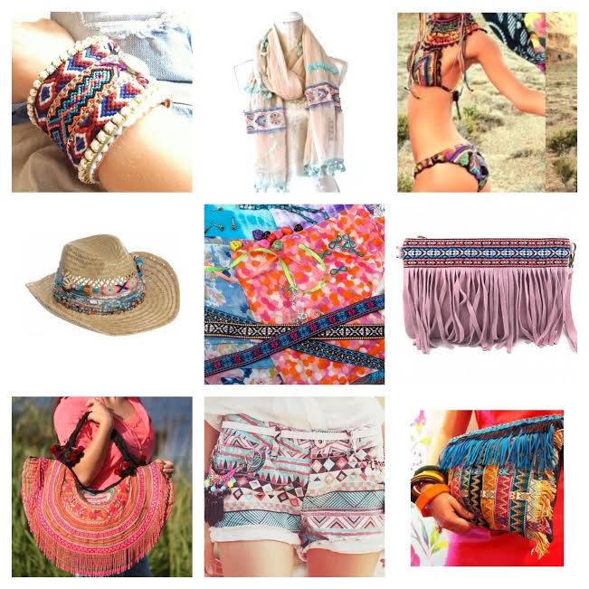 S_600526 - WOVEN DECORATIVE BAND WITH FLOWER PRINT MULTI / FUCHSIA (8m)