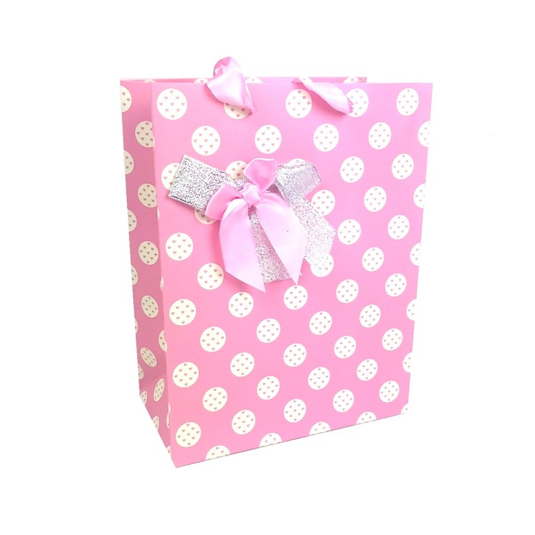 S_811975BD - LUXE PACK BAG SMALL HEARTS PINK DOTS 26X32CM (12st)
