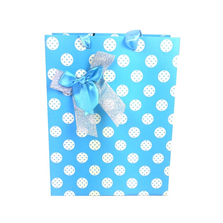 S_811975BA - LUXE PACK BAG BLUE DOTS SMALL HEARTS 26X32CM (12st)