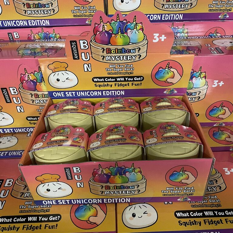 55346 - RAGE - RAINBOW Squishy Bun Dumplings LARGE (Dim. 8.5 x 8.5 x 4.8 cm) - Viral 2026 Toy Fidget T